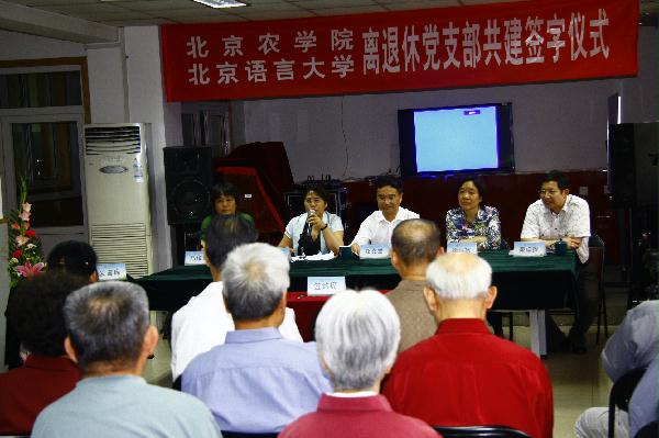 “我们和北京农学院的师生不仅有地域之便利,更有合作之缘。这是我们第28党支部全体党员的一个梦想,今天在两个学校党委和离退休工作处领导的大力支持下,我们这个梦想终于实现了”。这是北京语言大学离退休第28党支部书记杜厚文同志64日在北京农学院离退休工作处活动厅召开的“北京农学院离退休党支部与北京语言大学离退休党支部签署共建协议仪式上”一番发自内心的讲话。这是一次别开生面的离退休基层党支部党日活动。开创了北京市离退休基层党支部跨校纪建设之先河,受到上级领导的高度重视和兄弟院校的关注。北京市委教育工委老干部处原处长徐小珍(调研员)、北京农学院党委书记郑文堂、机关党委书记兼校办副主任高建伟、组织部副部长袁中立、华北电力大学离退休工作处处长秦卓贤出席签字仪式。并分别发表了热情洋溢地讲话。大会由北农离退休党委书记马俊云主持。