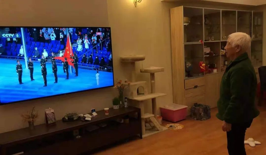 抗美援朝老战士蒋丽华老师在上海收看冬奥会开幕式