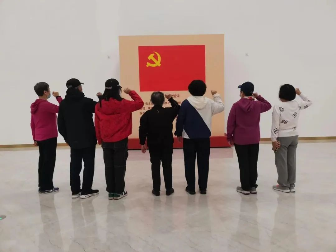 老同志们纷纷驻足凝望、用心感悟、交流心得,他们通过一张张老照片、一件件历史文物,重温了中国共产党的百年壮阔历史,为中国共产党人追求真理的坚定信念和浴血奋战的大无畏革命精神所感动,切实感受到了中国共产党建党的不易,体悟到了中国共产党为中国人民谋幸福、为中华民族谋复兴的初心和使命。他们向党旗庄严宣誓,诉说着对党的无限热爱和坚定不移跟党走的决心。
