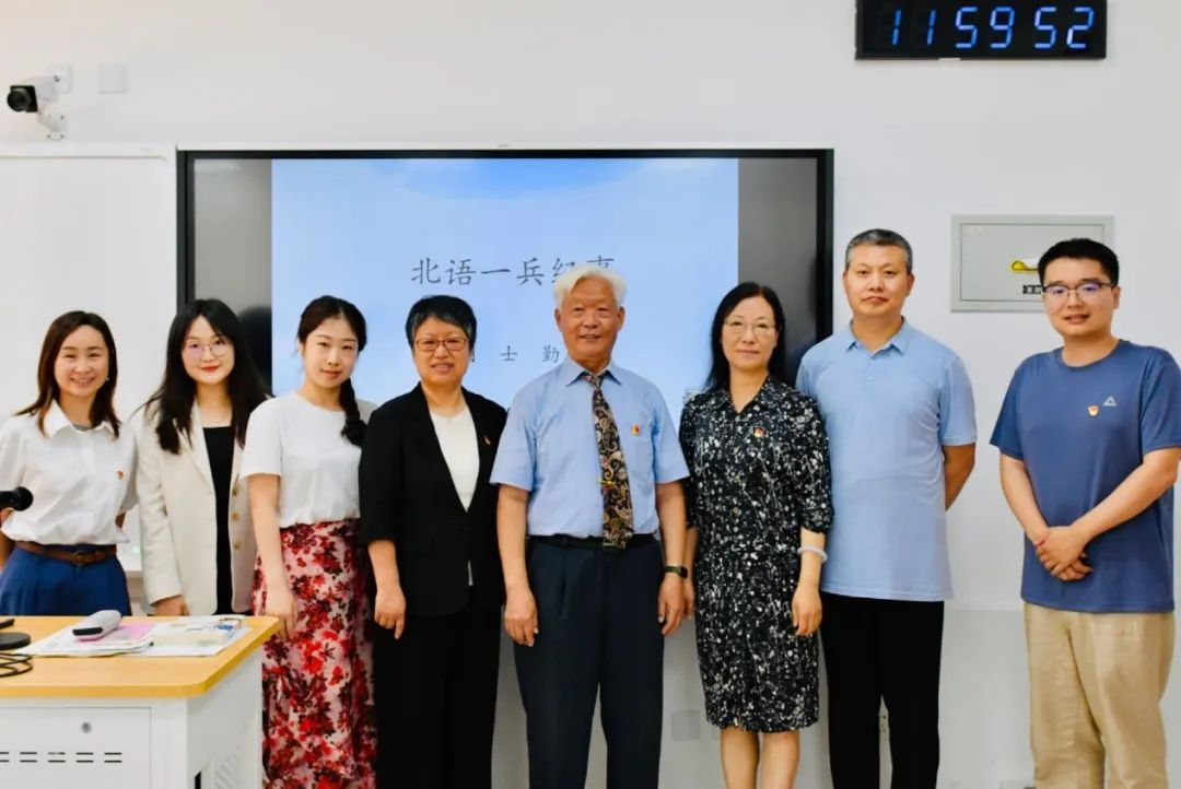 刘士勤老师1939年2月出生,1964年起在北京语言学院(现北京语言大学)执教。在近60年的国内外从教生涯中,刘老师主编多部汉语国际教育实用教材、教学考试大纲,编纂多部工具书,撰写论文数十篇,所教学生遍布五大洲,其中包括哈萨克斯坦共和国总统托卡耶夫等政要及汉学家。刘老师的党课以“北语一兵纪事”为主题,从北语建校和汉教事业发展的见证者、亲历者、实践者的角度,介绍北语60多年来发展壮大的奋斗历程,讲述老一辈汉教人是怎样伴随政治进步的“人生三部曲”走上献身“国家和民族的事业”之路、凭借坚定的理想信念从无到有地开创特色课程的光辉事迹。刘老师以自己出国执教的亲身经历告诉学生,在中外文化交流中应该担当汉语授课的好教员、答疑解惑的解说员、传播中国文化的宣传员、牵线搭桥的联络员的“四员”使命,他与托卡耶夫总统真挚的师生情谊就是最集中的体现。刘老师的党课使学生认识到:为了使世界“读懂中国”,我们自身须秉持坚定的理想信念,以过硬的政治品格、高昂的精神面貌、不畏艰难困苦致力于教学实践。刘老师虽已退休,但仍心系教育事业,积极撰文、讲学,宣传介绍北语校史。