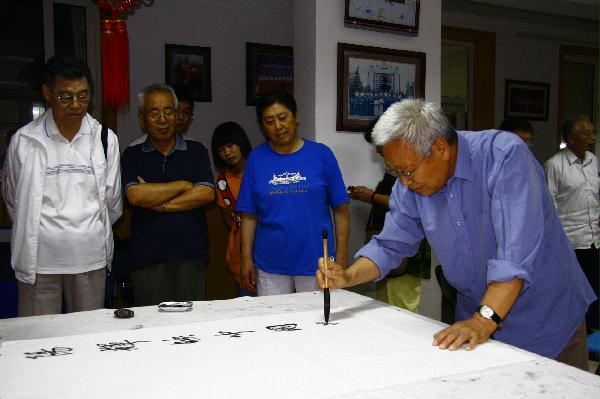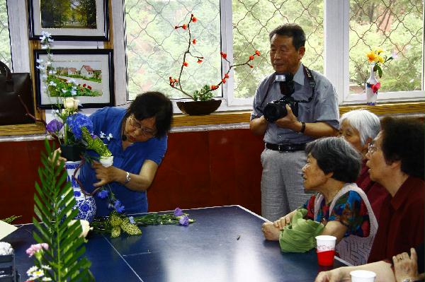 签字仪式之后,两个支部的党员分别展示了才艺。由北京农学院离退休第7党支部的两位园艺专家为大家现场制作和讲解了精湛的插花艺术。北京语言大学离退休第28党支部的谢业顺老师当场挥毫泼墨,书写了“朝阳辉映中国梦 ,老骥还春亦奋蹄”的条幅。双方党支部代表向离退休工作处互赠才艺作品,表达离退休党员对离退休工作处党组织的感激之情。