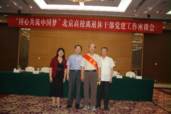 2013年7月9日上午,北京市教工委在中国地质大学隆重召开以“同心共祝中国梦”为主题的北京高校离退休干部党建工作座谈会。我校党委副书记赵旻同志、获得“三星”荣誉称号的离退休同志代表以及离退休工作处的领导参加了此次大会。会上,北京市领导为荣获“三星”的代表颁奖。李忆民同志代表我校“三星”和标兵上台领奖。