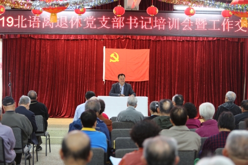 倪书记对离退休党建工作提出了四点要求,一是深入学习习近平新时代中国特色社会主义思想,提高政治站位。2019年是我校深入贯彻落实全国教育大会精神,冲击“双一流”的目标、攻坚克难、狠抓落实的重要之年。学校党委加强党的政治建设,深入贯彻全面从严治党。离退休人员和学校在职教职工总数相近,党员占全校党员总数近一半,离退休党建工作在学校党建工作全局发挥重要作用,在推动全面从严治党中承担重要任务,是做好离退休工作的重要抓手。离退休工作党委根据党员特点,开展了很多扎实有益的工作,积极引导离退休人员增添正能量。离退休教职工党支部书记是基层党组织的“主心骨”,政治觉悟高,经验丰富,在持续引导广大老同志牢固树立“四个意识”,坚定“四个自信”,做到“四个服从”,加强党委和老同志的联系方面,发挥了独特和重要的作用。今后还要继续发挥工作主动性,创新工作方式,不断提升工作的质量水平。二、以思想建设为基础, 强化理论学习。针对离退休人员的实际和特点加强理论学习,把集体学习和个人学习相结合,经常性学习和专题辅导相结合,参观考察和学习讨论相结合,开展形式多样的思想政治教育活动,做到思想政治教育工作常态化。保证老同志及时了解党中央大政方针和决策部署,及时了解国内外形势和学校发展,通过要引导教育离退休干部党员始终保持情怀,坚定信仰。三、加强组织建设,着力打造坚实巩固的思想阵地和战斗堡垒。离退休干部党组织是把老同志有效组织起来,保证他们离岗不离党、退休不褪色的基本,是老同志十分看重的精神家园。要创新活动方式,按照“有利于教育管理、有利于发挥作用、有利于参加活动”的原则,保证离退休干部党员都能参加党组织的活动,要保证组织全覆盖,活动有阵地,加强支部班子建设,活动方式要紧跟时代步伐,增强吸引力和凝聚力。四、发挥正能量,为学校发展助力。在广大教职工的支持下,本届党委和行政领导班子致力于学校发展,稳中求进,在改革体制、内涵发展上下功夫,争创“双一流”。感谢老同志在学校发展中作出的重要贡献。希望老同志继续为学校发展助力加油,积极弘扬正能量,为建设北语添砖加瓦。
