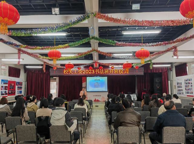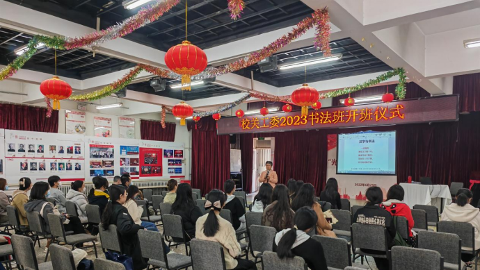 林国立副主任首先致辞,他对书法班开班表示祝贺、向参会人员介绍了书法班授课教师,并对他们表示了最诚挚的感谢。随后他向同学们分享了自己对书法学习的感悟,他希望同学们在今后的学习中汲取书法理论营养、掌握书法基本技法,不断提高书写水平,将书法艺术发扬光大。