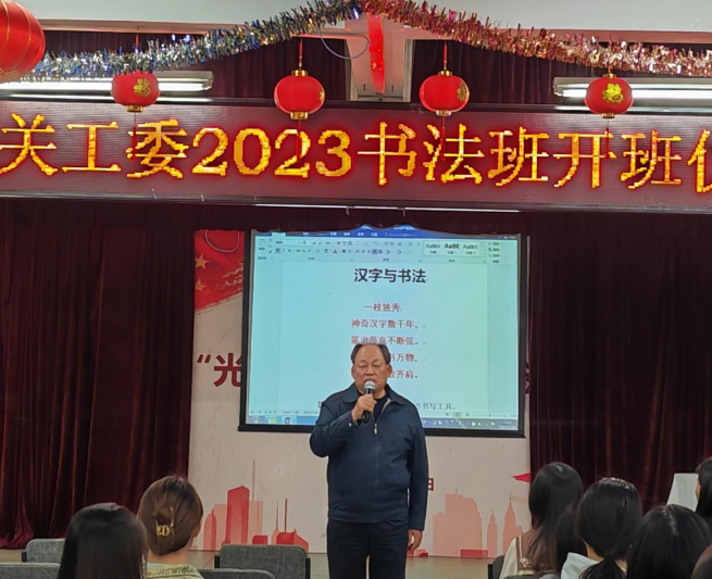 崔克娟副秘书长表示,离退休工作处作为关工委的秘书处,将搭建平台,发挥老同志经验优势,助力青少年健康成长。书法班的宗旨是致力于传播和弘扬中华优秀书法文化,她希望学员们能够以饱满的热情投入学习,她祝愿大家学有所成,在学习中感悟经典,传承艺术,提升传统文化素养。