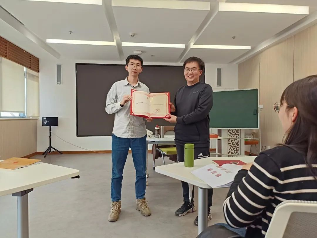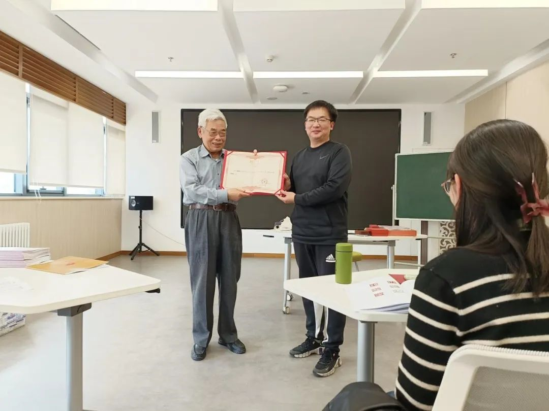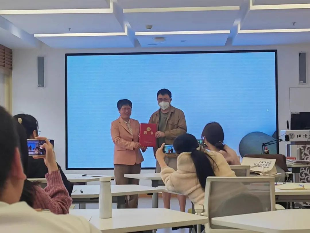 罗立祥秘书长为篆刻班主讲教师董原,周六班助教聂锦燃颁发了聘书,崔克娟副秘书长为篆刻班周日班助教付厚谕颁发了聘书。