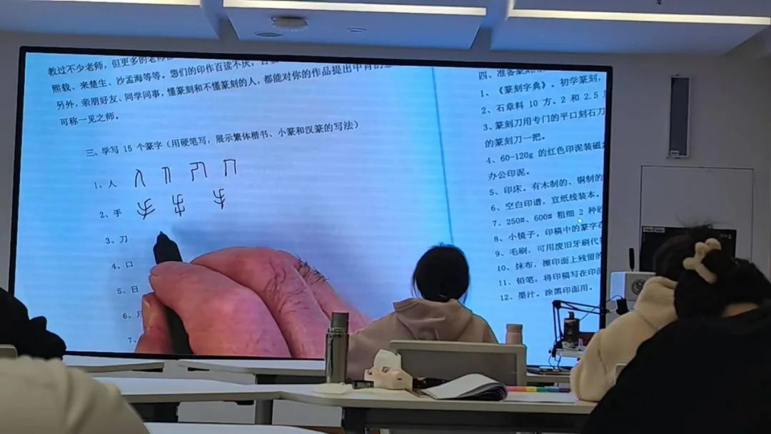 开班仪式结束后,主讲教师董原为两班学员们带来了第一课——《篆书与篆刻》。
