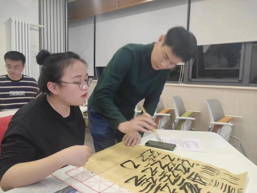 随后,书法班四位同学分享了自己的学习心得,他们谈了自己的学习收获。重拾墨笔,同学们都收获了一趟静心之旅,一场审美之旅,一场哲思之旅。不仅学习了博大精深的书法艺术,也学习了老师们对传统文化的热爱和深刻的理解,感受到中华传统艺术代代相传,文脉赓续。