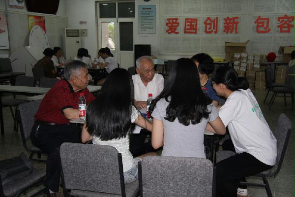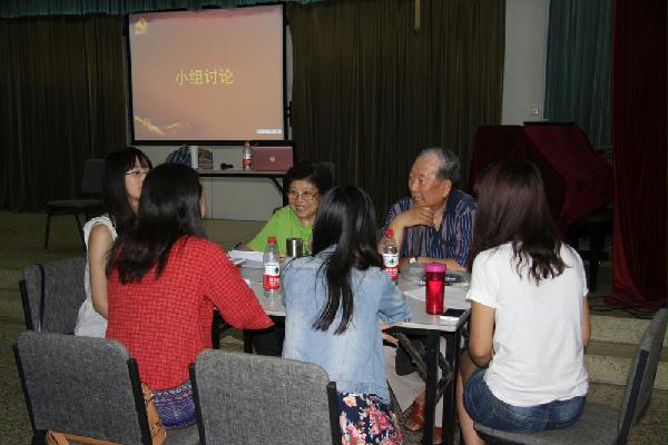 5月23日下午,关工委的四位老同志和离退休工作处党总支的七位党支部书记应邀参加了由外国语学院12级英3班团支部的举办的题为“老少携手共进,传承‘五四’精神”的座谈会。