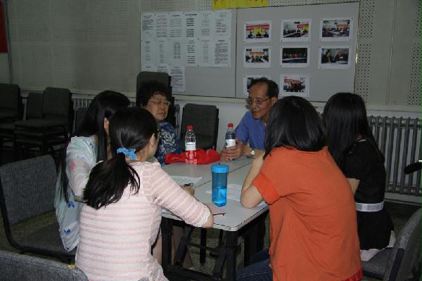 为了使学习交流活动更加深入,大会发言之后,就同学们关心的学业、就业、入党、人生阅历、处世哲学等五个专题分小组进行深入讨论。每组两位老师与大家进行面对面的交流。关工委专职委员代表马河清老师、李忆民老师、老党员代表李威伦老师、退休第11党支部书记程之一老师、退休第19党支部书记王娴文老师等分别在五个小组里做了主题发言。老同志以各自的人生经历为例,为同学们指点迷津,解除疑难,提出了切实、可行的建议。大学生敞开心扉,各抒己见,讨论的十分热烈。