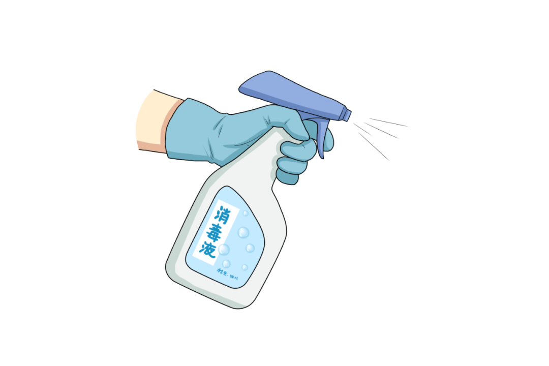 √ 使用消毒剂的过程中,要注意避开口鼻,最好佩戴口罩和橡胶手套,防止液体飞溅。