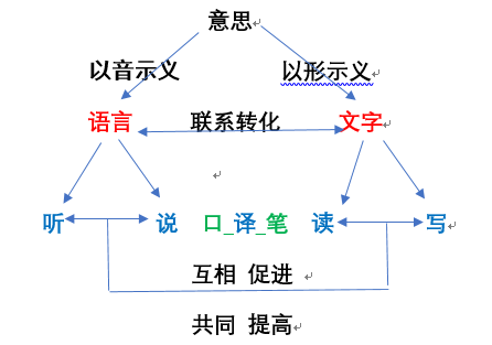 语言是有意义的声音,是以音示意的听觉符号系统,是通过听和说达到人类交际目的的。(语言以音示意,音随意转)