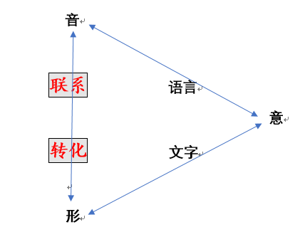 音形相互联系、转化,统一于意。这就是语言和文字的区别与联系,对立与统一。