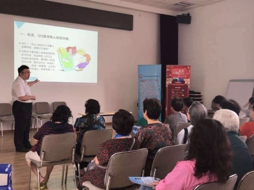 2019年6月21日上午,北京语言大学离退休工作处的大力支持下,由社区居委会主办,工商银行语言大学支行协办,一场“防诈骗”的公益讲座在在居委会二楼活动厅举行了“防诈骗公益讲座”活动。本次活动邀请到工行语言支行客户经理田雪饶担任讲师,现场共计30多名社区群众参与其中。