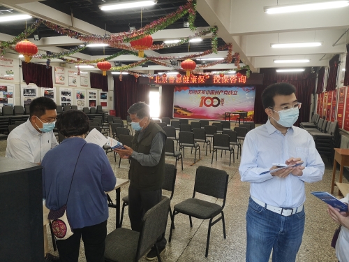 2021年9月22日至24日,为满足离退休教职工自愿投保“北京普惠健康保”的需求,离退休工作处根据人事处通知,与财务处合作,在离退休工作处10号楼院内为有需要投保的老同志提供投保办理服务。