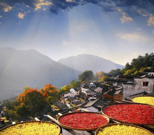 重阳节是最好的赏秋时期,中国南方还有些山区村落保留了“晒秋”特色。去乡村赏民俗、看晒秋,已成为乡村旅游的一种时尚。“晒秋”是一种典型的农俗现象,具有极强的地域特色。在湖南、广西、安徽、江西等生活在山区的村民,由于地势复杂,村庄平地极少,只好利用房前屋后及自家窗台屋顶架晒、挂晒农作物,久而久之就演变成一种传统农俗现象。