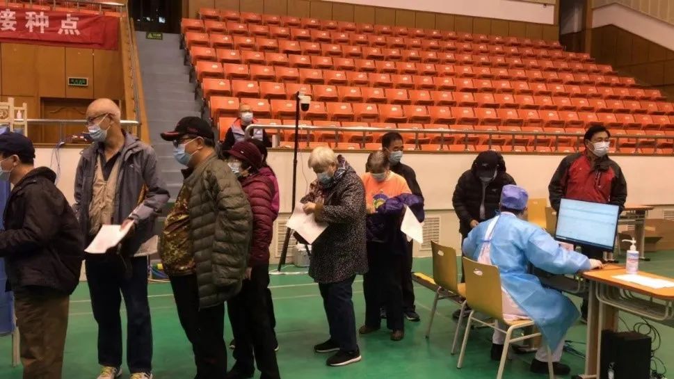 接种现场平稳、安全、有序。前来接种疫苗的老同志按照安排在指定时间段持本人身份证来到逸夫体育馆,在入口处经体温检测和“北京健康宝”查验后,有序排队进入接种点,经过健康询问并签署《新型冠状病毒灭活疫苗接种知情同意书》后进行疫苗接种。完成接种的老同志需在馆内留观区留观30分钟,确认无异常情况后方可离开。