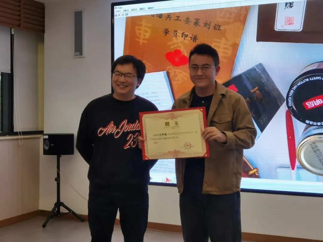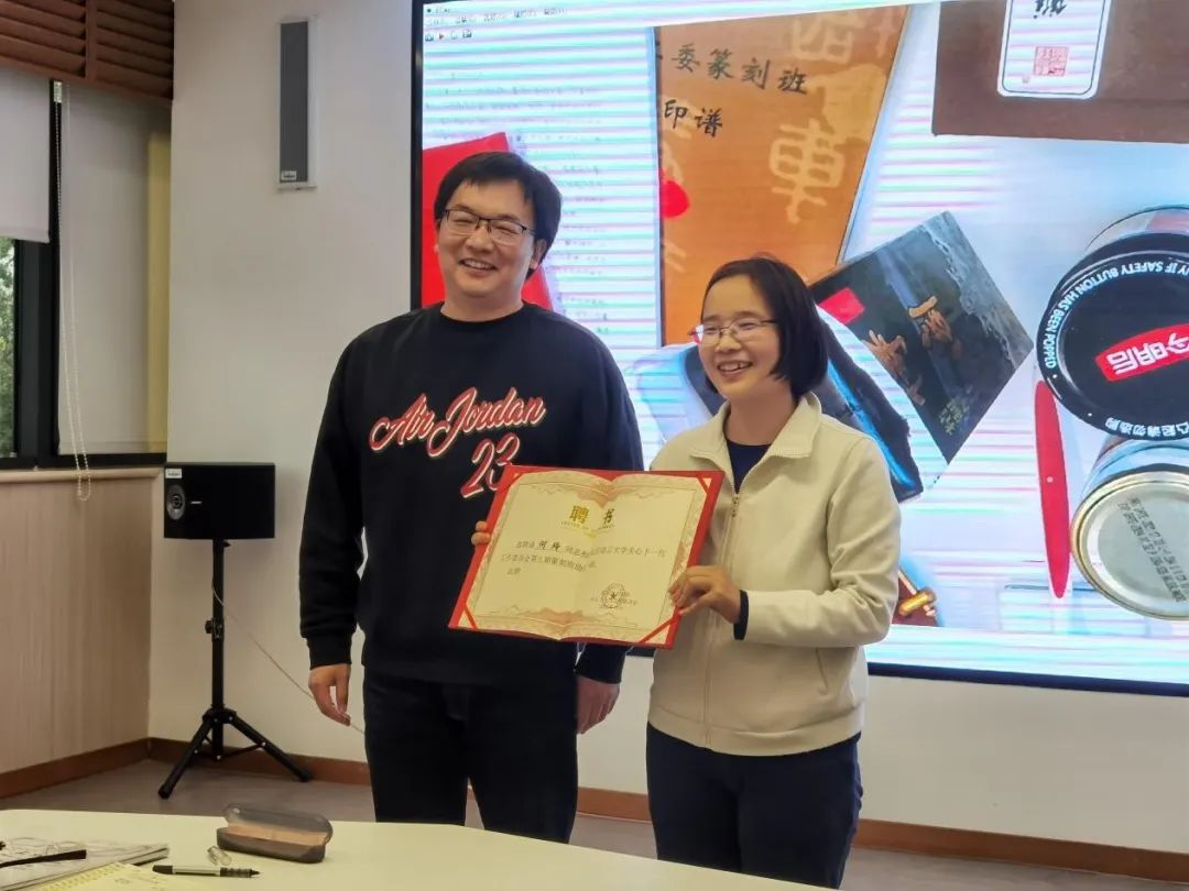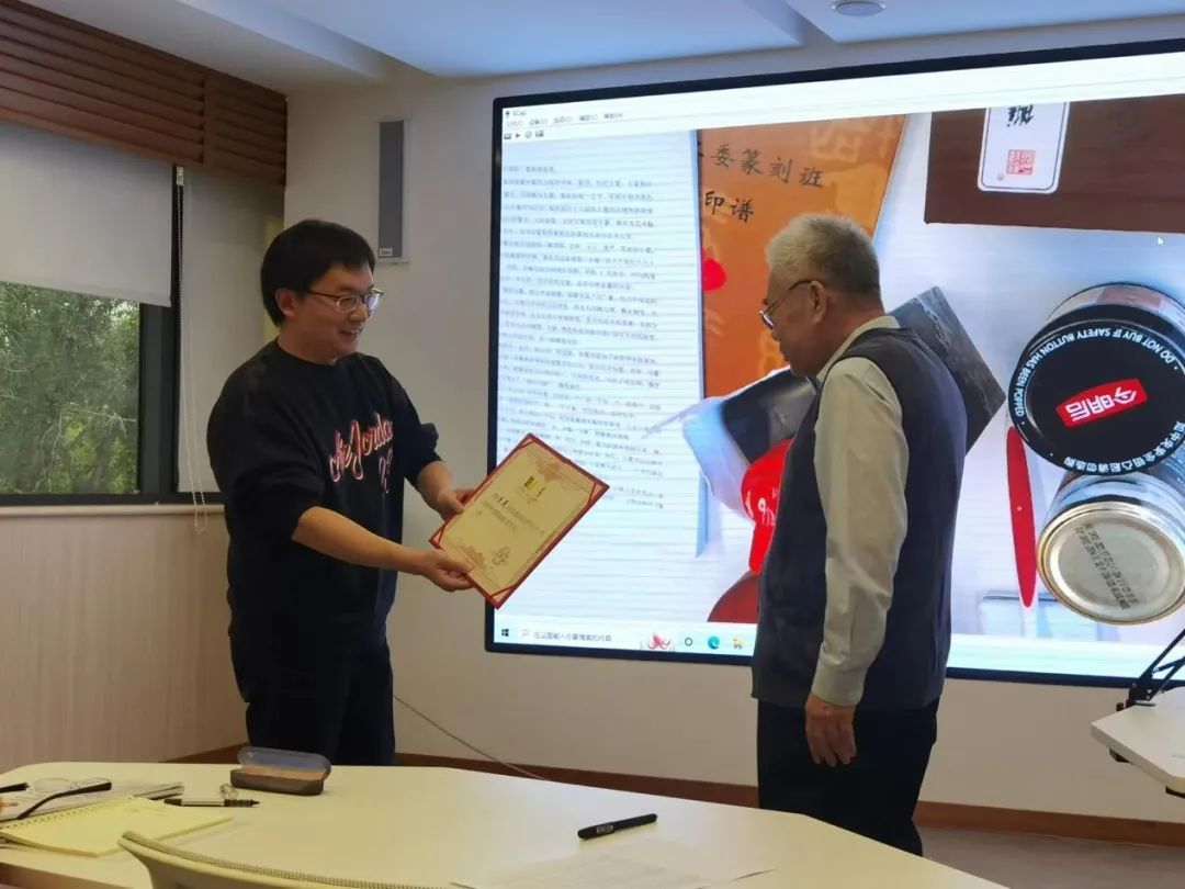 随后,关工委秘书长罗立祥为篆刻班主讲教师董原,助教何玲、付厚谕颁发了聘书。