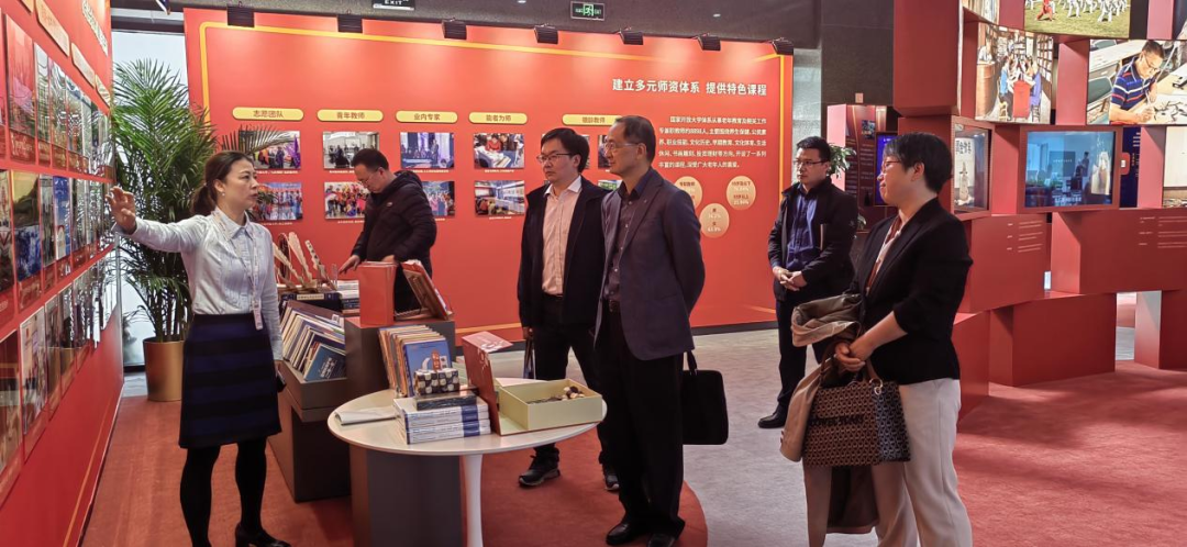 国家开放大学党委副书记、国家老年大学校长刘臣,国家开放大学离退休工作部部长谢盛勇,老年学院副院长刘彩梅,国开贝和教育科技(北京)有限公司董事长潘勇,老年学院教学教务中心主任闫俊,老年学院干部马松新热情接待了魏晖副书记一行。刘彩梅副院长陪同魏晖副书记一行参观了“互联网+”大学展示中心及“开启中国老年教育新篇章”展览。