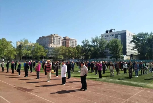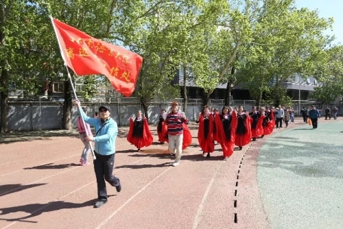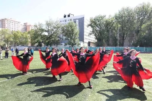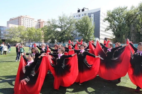 本次运动会践行“安全第一”的原则,首先,那松长老师带领全场人员做赛前热身运动,大家积极配合,队列、动作整齐划一,为之后的比赛做好了充分的准备。随后,音乐响起,身着红裙的舞蹈老师们踏着轻快的步子来到操场中央,这正是离退休工作处舞蹈队为大家带来的精彩表演——《踏歌起舞》 。蓝天白云之下,绿茵场地之上,随风起舞的红裙就是现场最靓丽的风景线,收获了大家的阵阵掌声。