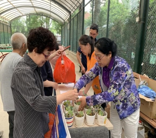 为广泛宣传环保社区理念,提高居民环保意识, 改善社区居民的居住环境,倡导每位居民做社区的主人,爱护自己的家园,北语社区党支部于2019年5月17日上午在社区阳光棚举办“白色垃圾换绿植”主题活动,本次活动由街道办事处组织部支持。凡是在我社区居住的居民以户为单位可凭废弃的矿泉水瓶、废旧电池等白色垃圾换取绿植一份。