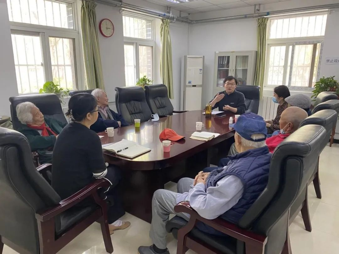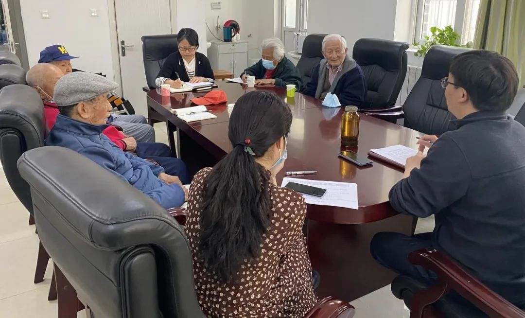 4月19日下午,离退休工作处召开离休党支部书记座谈会,王俊朗、刘素珍、沈明德、唐传寅、刘国桐五位离休党支部书记及离退休工作处党委书记崔克娟、处长罗立祥参加座谈会。
