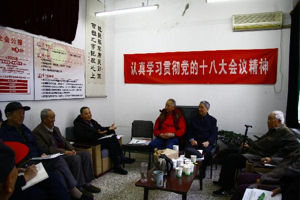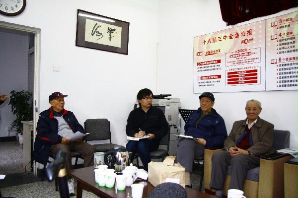 11月19日上午,我校离休第一、二支部召开“认真学习贯彻党的十八届三中全会精神”座谈会。会议由第二党支部书记孔繁玉同志主持。随着举世关注的党的十八届三中全会在北京胜利闭幕,我校广大离休同志通过报纸、网络、电视等媒体,及时学习了解三中全会公报内容,全面领会全会精神实质,并就相关问题积极进行讨论学习。大家一致拥护中央提出全面深入改革的部署,坚决同以习近平总书记为核心的党中央保持一致,并要为党和人民做出力所能及地贡献。