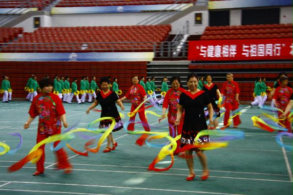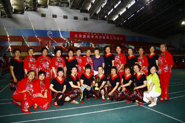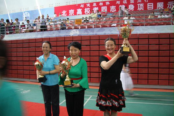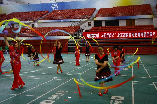 5月28日上午,市委教育工委市教委离退休干部处、北京教育老干部活动中心在北京农业大学体育馆举办“与健康相伴 与祖国同行”北京高校老同志健身项目展示活动,市委教育工委市教委有关领导出席并讲话。共有28所高校代表队参加了展示活动,我处舞蹈队展示了新北京健身秧歌《彩带秧歌》。《彩带秧歌》是北京市2003年推广的北京八大新秧歌之一。它大胆突破了秧歌的节奏,舞姿舒展、飘逸,不停地舞动彩带,使舞者的臂膀乃至全身得到了充分的锻炼。