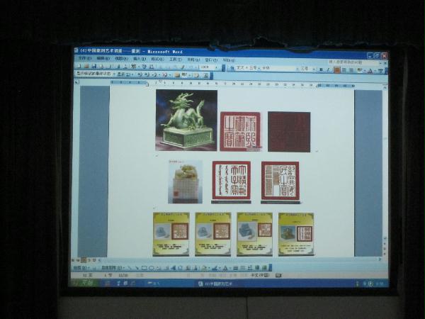 紧接着,刘新成老师运用视频,向大家展示了一些典性的印玺和石刻作品。随后,他向大家讲解了书法作品正确使用印章的问题,并将自己编印的《正确用印》材料,分发给大家参阅,这使得与会者受益匪浅。