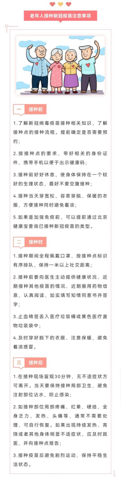 目前全球疫情仍呈扩散蔓延态势,病毒在变异,防控形势依然复杂严峻,奥密克戎毒株已肆虐100多个国家和地区,被称为人类净土的南极洲也出现了新冠聚集性疫情。而国内疫情呈现出多点散发、局部爆发态势,天津、西安、河南、浙江疫情仍在发展。60岁以上的老年人因机体各器官功能随着年龄增长而衰退,免疫力逐渐下降,基础疾病较多,更容易感染新型冠状病毒肺炎,感染新冠病毒后,重症率和死亡率远高于年轻人。研究数据显示,老年人在接种新冠病毒疫苗后,可以极大程度降低感染后出现重症和死亡的风险。临床证明,我国新冠病毒疫苗安全有效,能对老年人产生良好的保护作用。北京市已接种新冠疫苗超过5700万剂次,异常反映率极低,且可控可治,老年朋友不必担心。