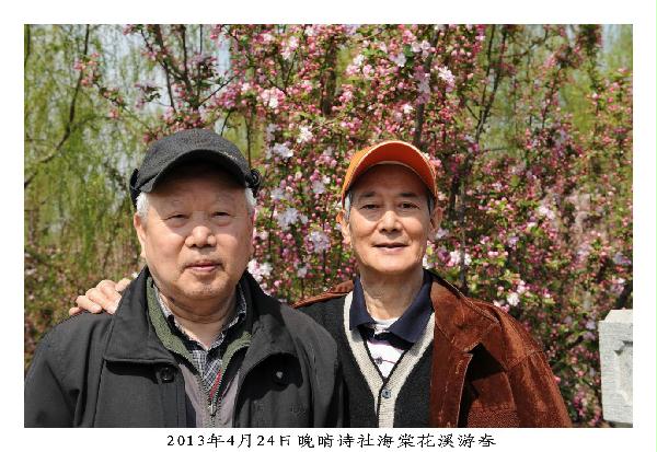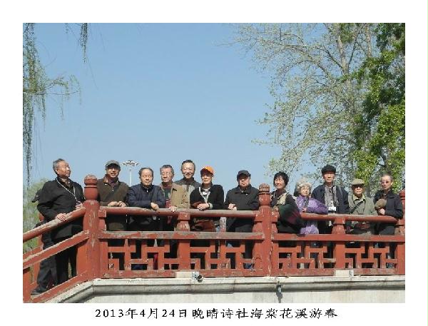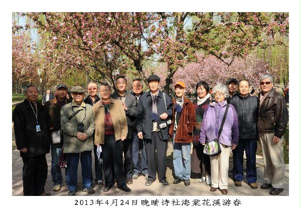 去年4月24日,晚晴诗社组织社员到土城公园春游,他写了一首《咏海棠花溪》的古体诗。